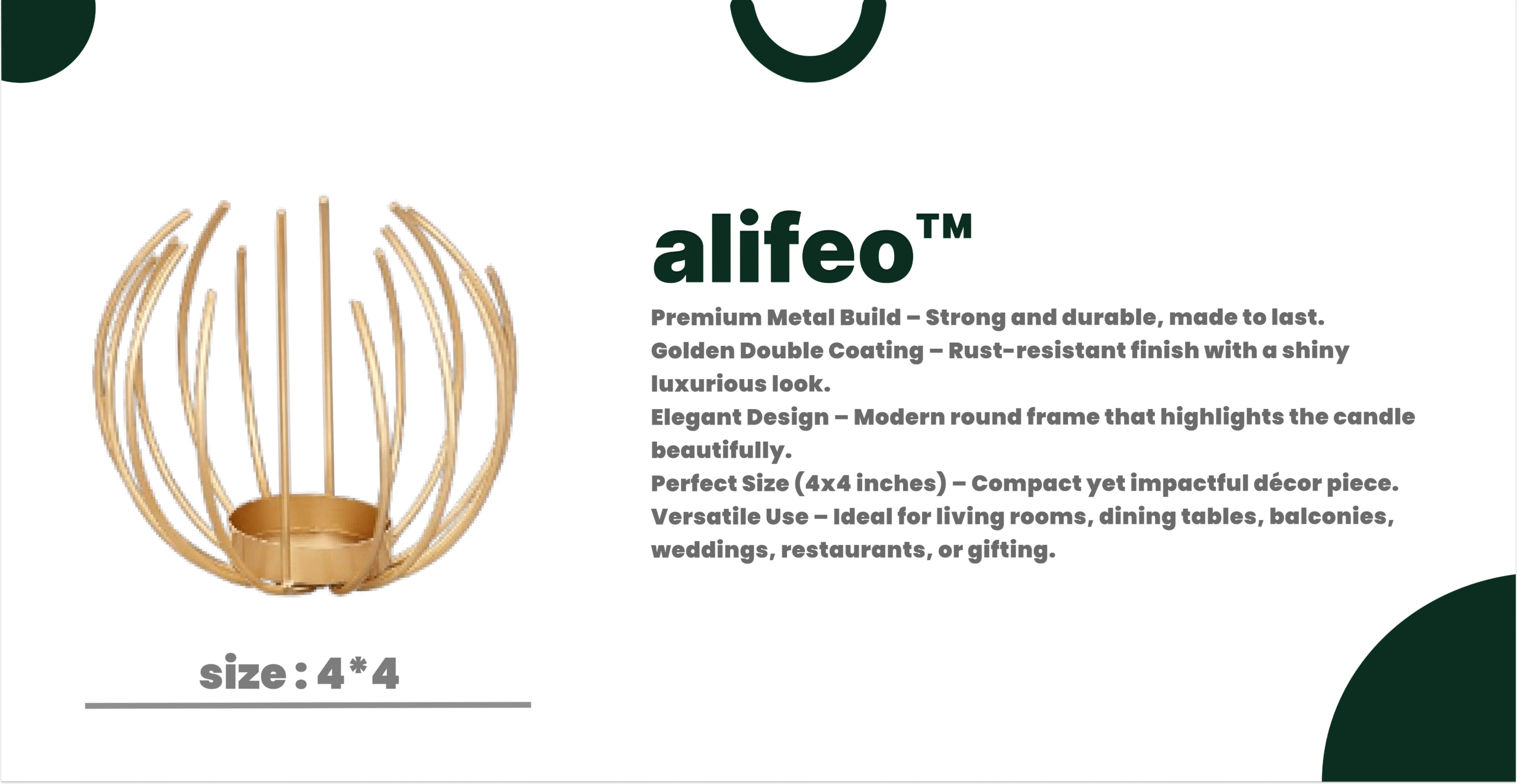 Add a warm, luxurious glow to your space with this beautifully crafted golden metal candle stand. Its minimal yet stylish design makes it perfect for center tables, dining areas, or festive décor.