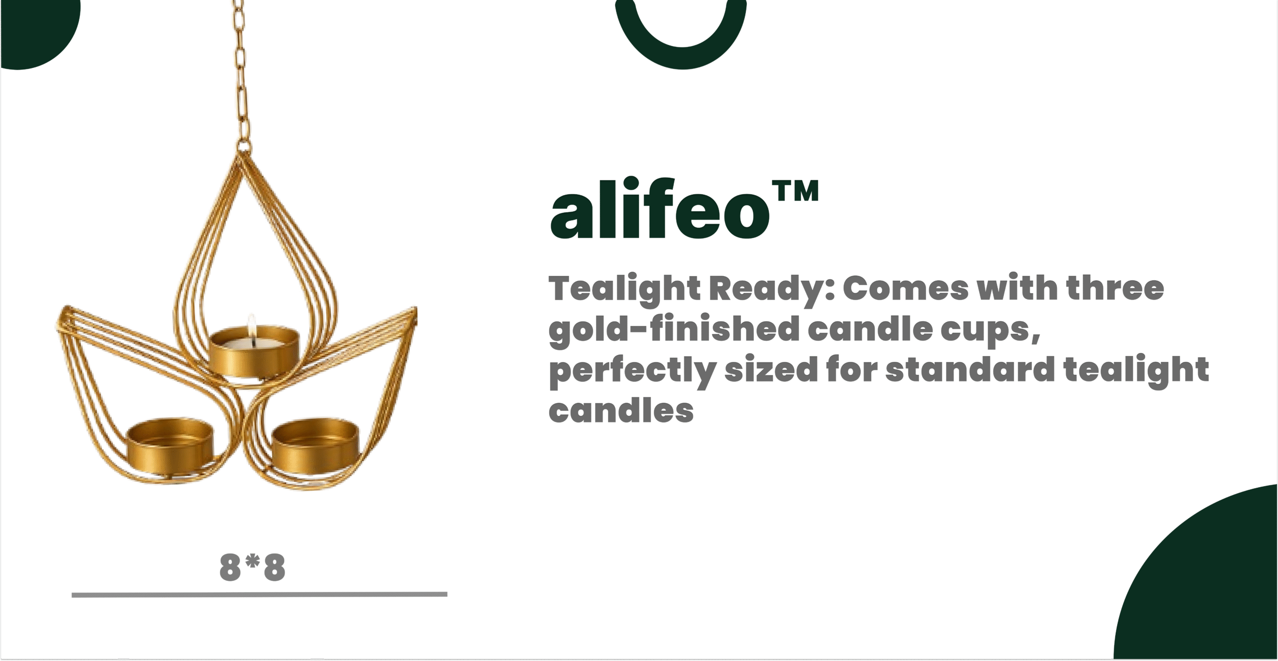 • 🕯️ Tealight Ready: Comes with three gold-finished candle cups, perfectly sized for standard tealight candles.