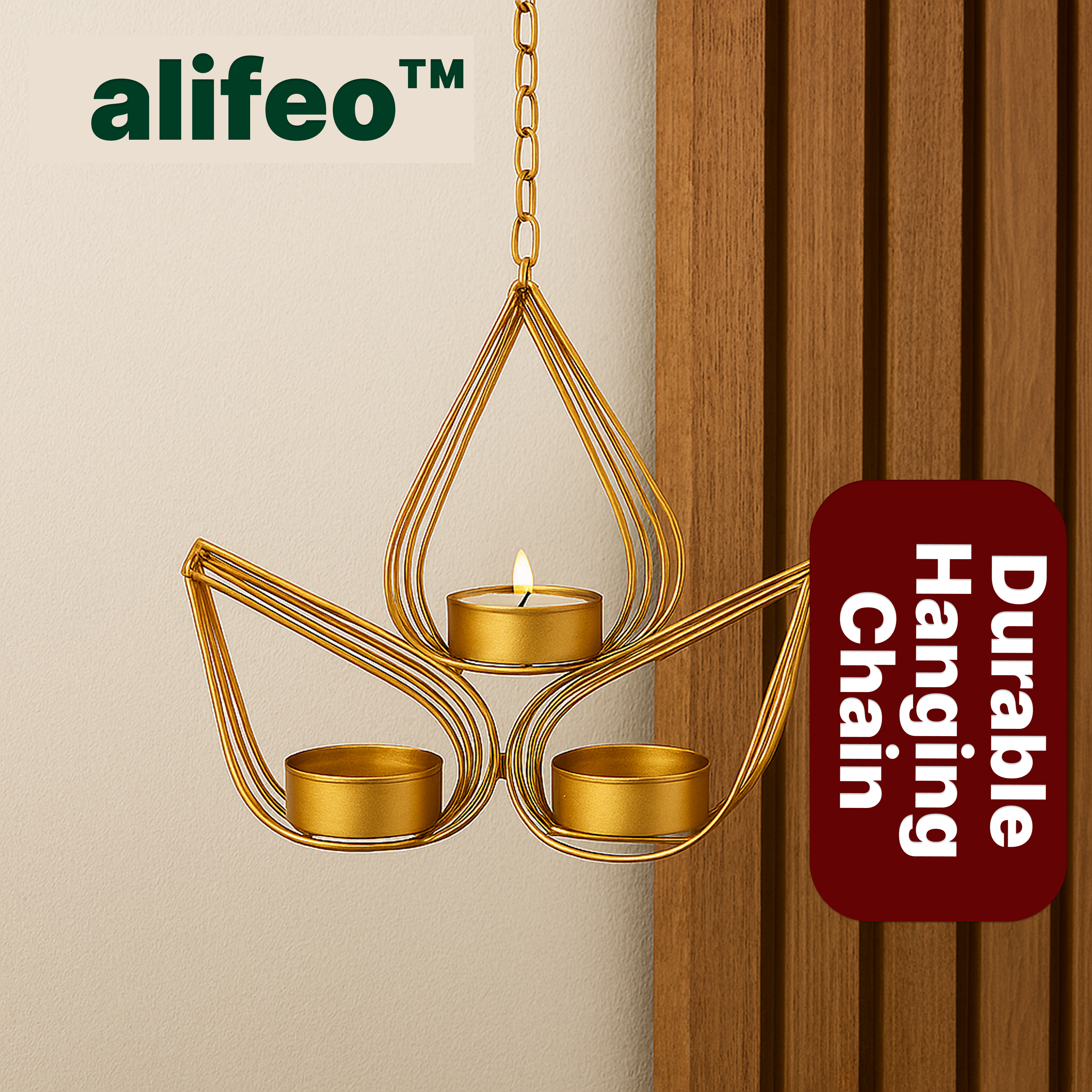 Elevate your home décor with the timeless charm of the Alifeo Gold Hanging Tealight Candle Holder. Crafted with precision and elegance, this piece features a stunning trio of teardrop-shaped frames in a radiant gold finish, each cradling a tealight candle for a warm, ambient glow.